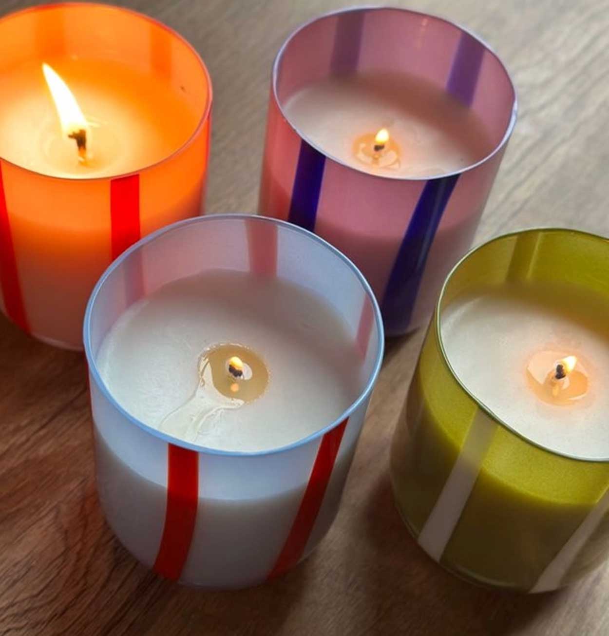 Striped, colourful glass vessels filled with gorgeous new scents. Perfect for the maximalist who loves bold design and luxurious fragrances, these candles offer double the delight. Enjoy as a beautifully scented candle, then repurpose the stylish vessel as eye-catching glassware, blending scent and style seamlessly.